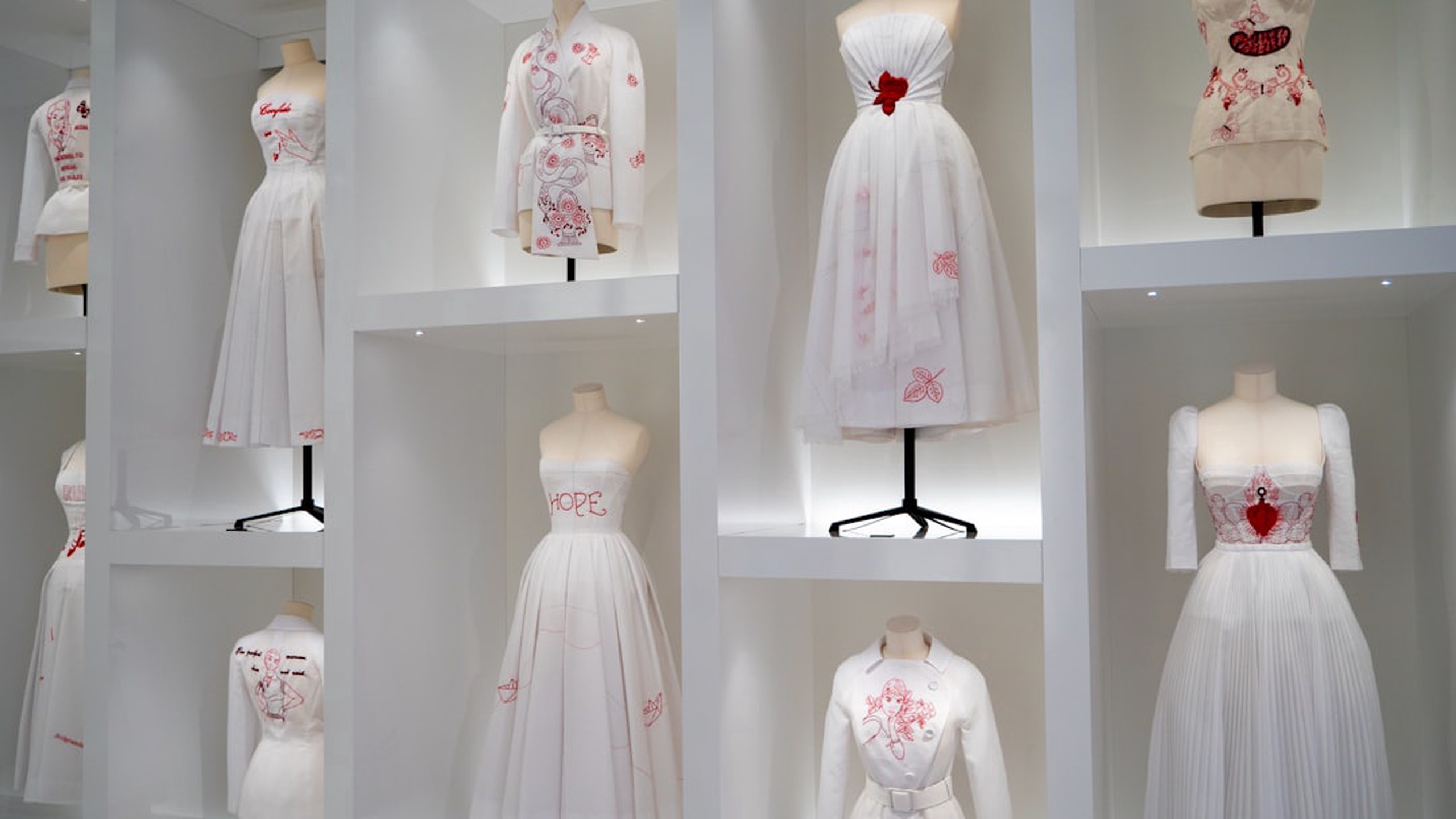 La Galerie Dior is a 2,000 m² fashion museum inside the historic hôtel particulier at 11 rue François 1er, where Christian Dior founded his couture house in 1946. Spread across two floors with 13 thematic rooms, the gallery traces over 70 years of Dior creations — from the revolutionary 1947 "New Look" through the work of every successive creative director including Yves Saint Laurent, John Galliano, and Maria Grazia Chiuri. Visitors can see archival couture gowns displayed as floating sculptures, a grand staircase lined with 1,874 miniature Dior creations arranged by color, and a reconstructed replica of Christian Dior's personal office with original sketches.