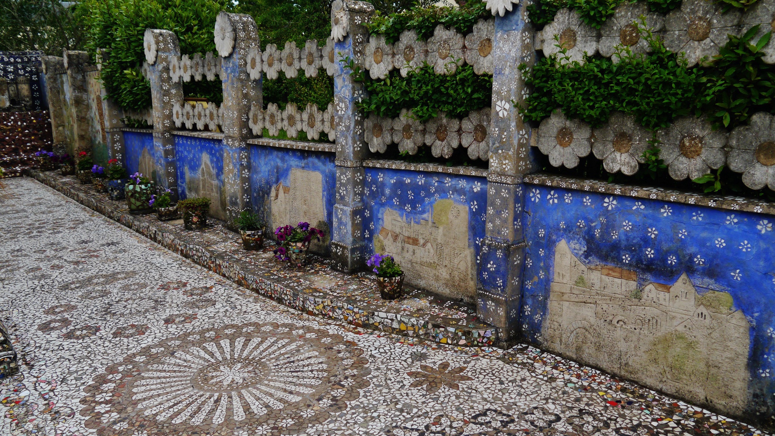 Maison Picassiette is a house entirely covered in mosaics made from broken pottery, glass, and porcelain fragments, created by Raymond Isidore between 1938 and 1962. Isidore, a municipal street sweeper in Chartres, began collecting shards of ceramic debris during walks and used them to decorate every surface of his modest three-room home — walls, ceilings, floors, and even furniture. Over 24 years, he expanded his work to cover the exterior facades, courtyard, a small chapel, garden sculptures, and a final structure he called the Tomb of the Spirit.