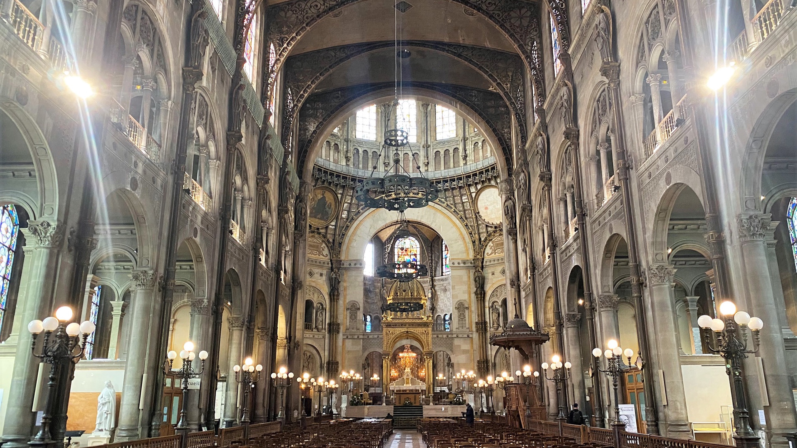 The church's walls are remarkably thin for a building of this size because the cast-iron frame carries all the structural weight. Traditional stone churches of comparable dimensions require walls several meters thick and massive flying buttresses — Saint-Augustin has neither, making it an early example of metal-frame architecture applied to religious buildings.