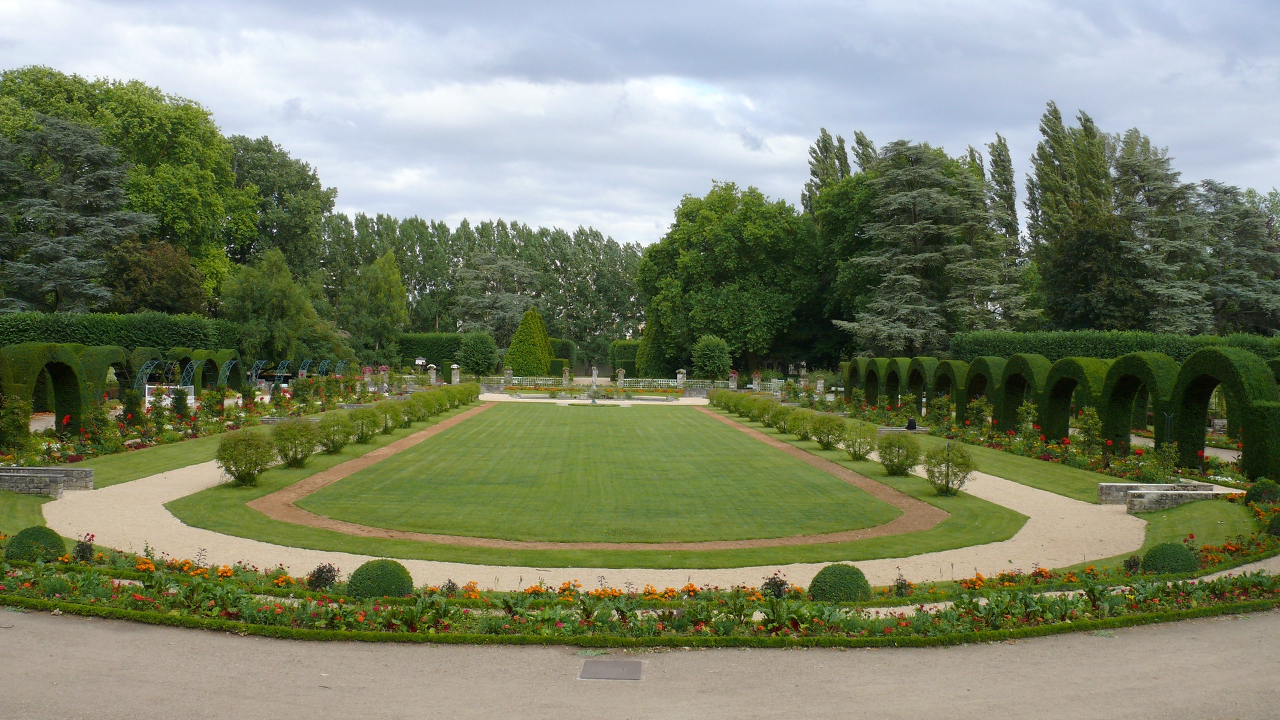 5-hectare Art Deco public park in Bourges, designed by landscape architect Paul Margueritat between 1922 and 1930. Built on former marshland that required 100,000 cubic metres of imported earth and 6 kilometres of drainage pipes, the garden blends French formal design with Art Deco geometry. Visitors can walk among sculpted hornbeam hedges, rigorously trimmed yew arches shaped into cones and pyramids, magnolia arcades, and rose gardens.