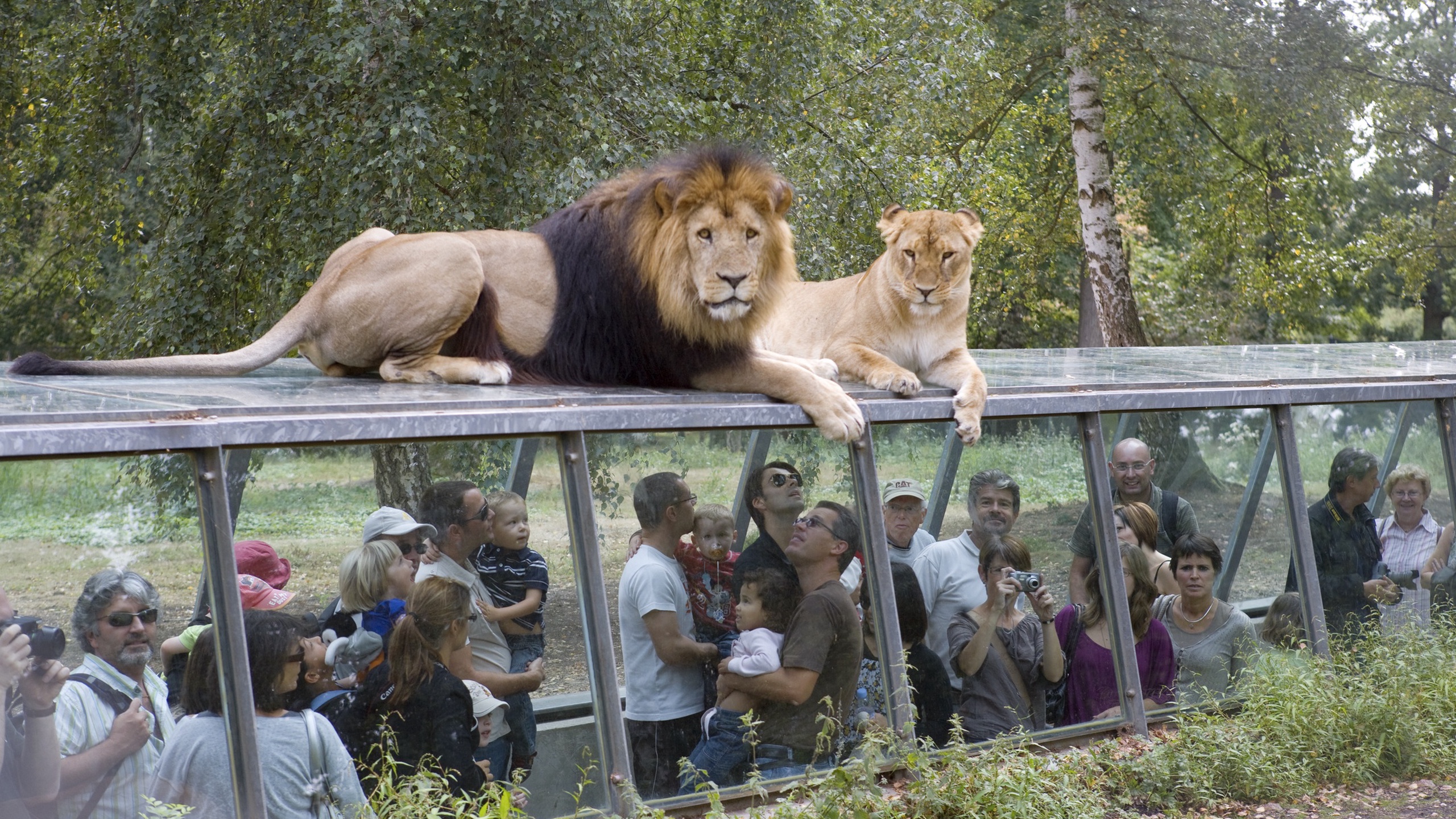 Thoiry ZooSafari (now officially Wow Safari Thoiry) is a combined drive-through safari park and walking zoo set within a 150-hectare estate about 45 km west of Paris. Opened in 1968 as France's first safari park, the concept reverses the traditional zoo model: visitors stay enclosed in their cars while animals roam freely across open terrain. The drive-through route takes about an hour and passes through zones populated by elephants, rhinoceroses, giraffes, zebras, bears, wolves, and various African and North American species.